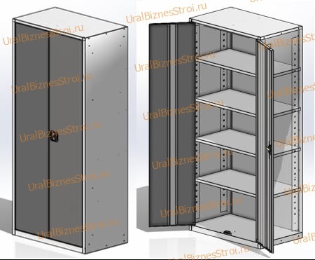 • Конструкция представляет собой односекционный корпус с двумя распашными дверями.