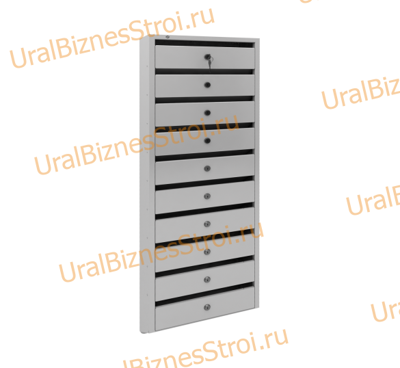 • Корреспонденция в ячейках располагается горизонтально , на прямых полках под углом 90 градусов. • Почтовые ящики могут содержать от 4-х до 12-и секций,высота каждой -100мм.
