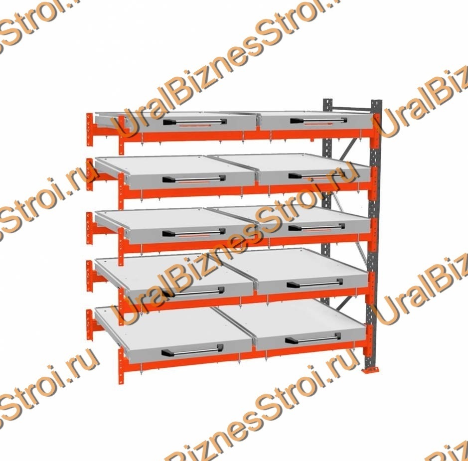 Стеллаж с выкатными платформами дополнительная секция 3000*1800*1050 5 ярусов 10 платформ - uralbiznesstroi.ru – Санкт-Петербург