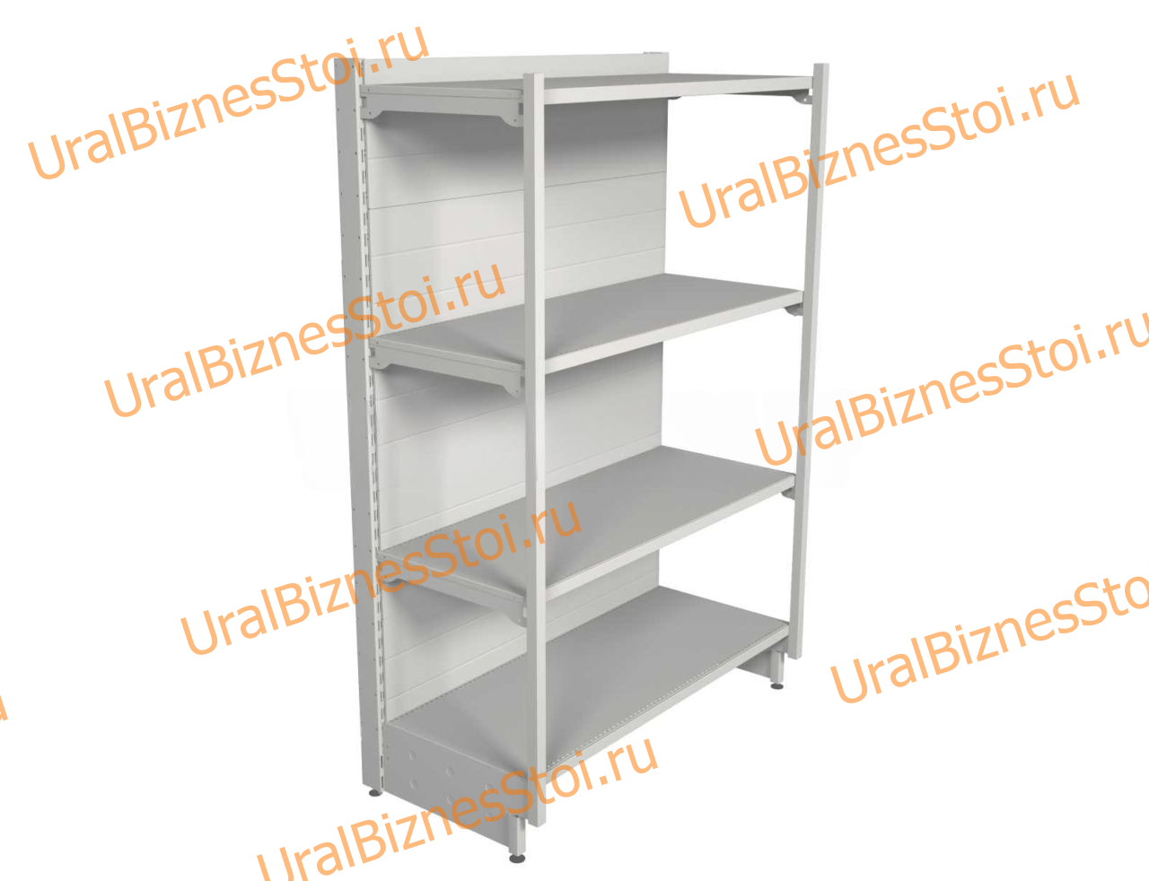 Каталог Стеллажи металлические Торговые стеллажи Торговые пристенные стеллажи (усиленные с передней стойкой) Торговый пристенный стеллаж с передней стойкой 1450*300*1200 4 полки